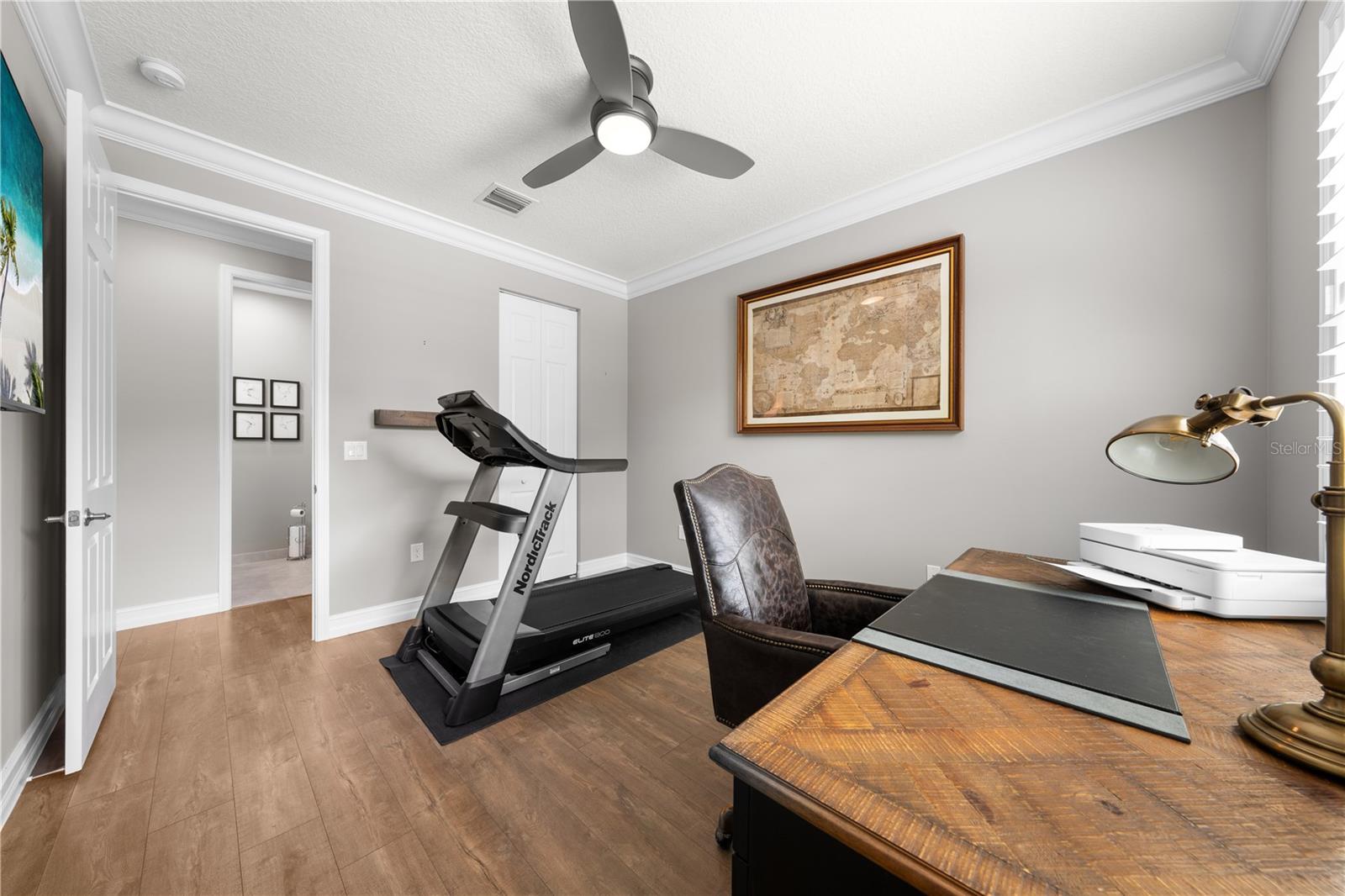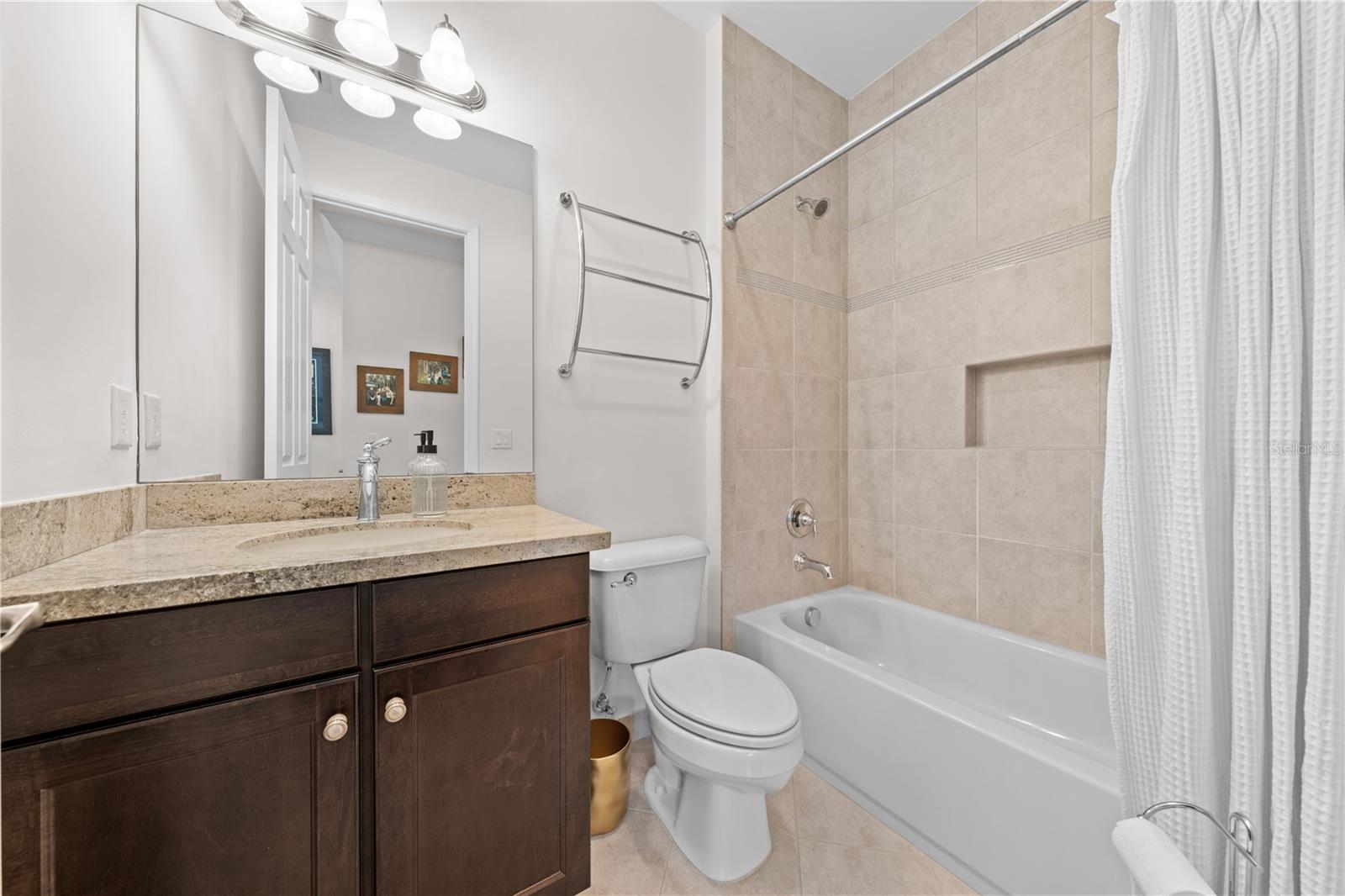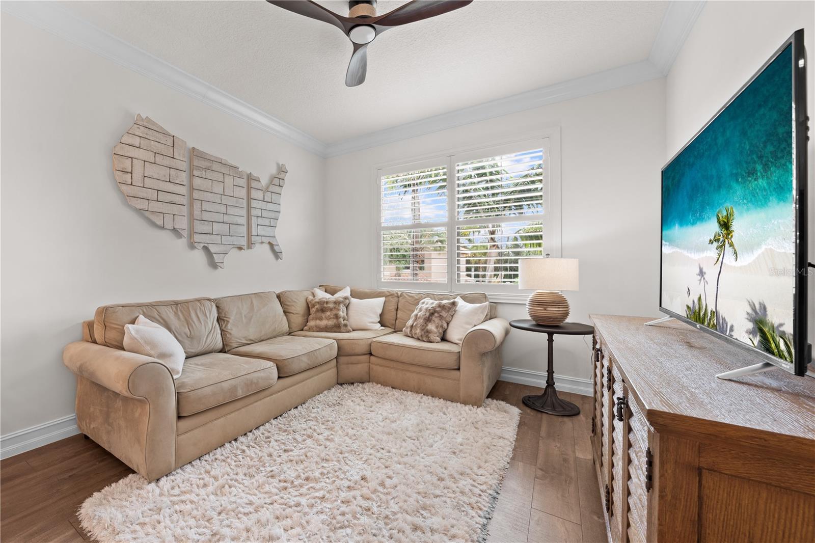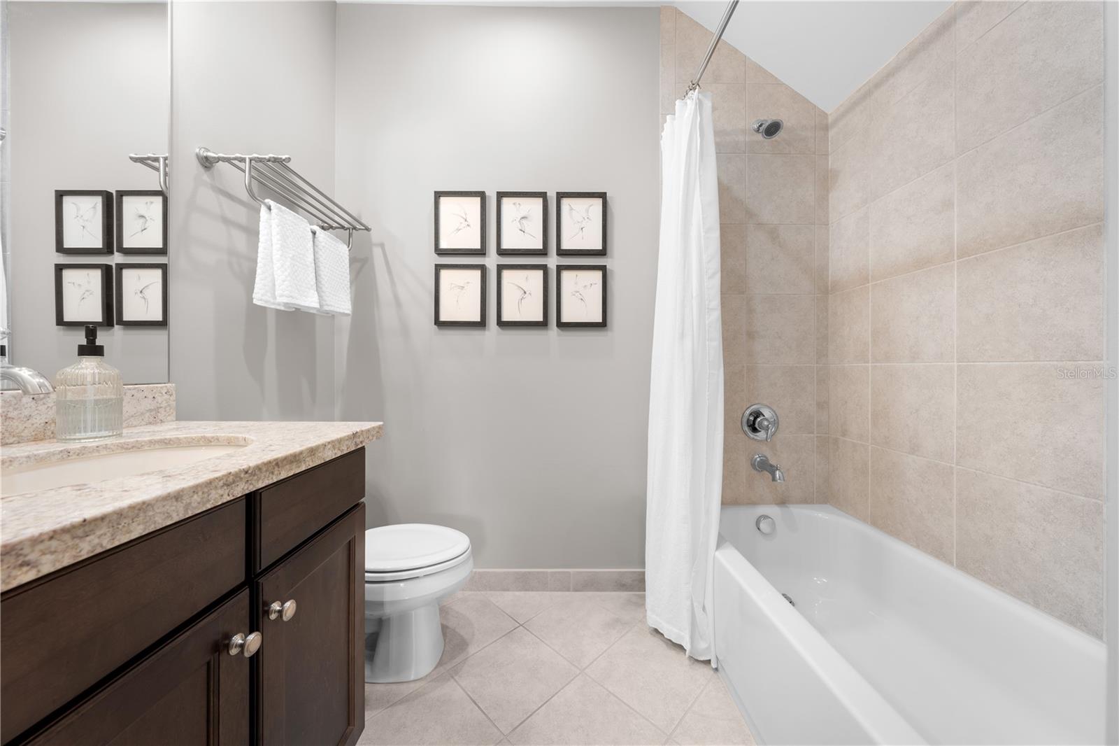 Welcome to this beautifully maintained, move-in ready two-story home, ideally situated on a premium lot with scenic water views in one of South Florida's most desirable gated communities. This 24/7 guard-gated neighborhood offers the perfect blend of resort-style living and everyday comfort.Step inside and experience timeless elegance paired with functional design. Wide-plank luxury vinyl flooring flows seamlessly through the main living areas and bedrooms, complemented by crown molding throughout. Plantation shutters provide privacy and style on the hurricane-impact windows, while custom drapery accents the sliding glass doors that open to an extended brick-paver patio--perfect for relaxing or entertaining. An extended brick-paver driveway adds both curb appeal and convenience.The entertainment-style kitchen is the heart of the home, featuring soft-close cabinetry, quartz countertops, a range with double ovens, an oversized island with surrounding storage, and an extended counter for casual seating and meal prep. A custom pantry adds additional organization. All kitchen appliances were installed in 2023. The kitchen opens effortlessly to the dining area and living room, creating a bright and open-concept living space.A full bedroom with a custom walk-in closet and a full bathroom are conveniently located on the first floor--ideal for guests or multigenerational living. Upstairs, you'll find a spacious secondary living area/flex space, a generous primary suite with two custom-built walk-in closets, and a private en suite bath featuring a garden tub. Two additional bedrooms and another full bathroom are also upstairs, along with a walk-in laundry room featuring tile flooring and abundant storage.Additional features include soft-close cabinetry and tile flooring in all bathrooms and the laundry room. A new air conditioning unit was installed in May 2025 for added peace of mind.The HOA provides exceptional value, covering lawn service, tree trimming, sidewalk pressure washing, and more--helping to keep the neighborhood pristine and worry-free.Residents also enjoy access to vacation-style amenities, including: A resort-style heated pool (winter) and cooled system (summer),canopy-covered seating, a splash pad, and covered playground.Indoor and outdoor basketball courts, pickleball and tennis courts, and a fully equipped, air-conditioned fitness center, and a stylish clubhouse with indoor card room and rentable event space.Lush tropical landscaping surrounds the entire community, creating an upscale, family-friendly atmosphere you'll love coming home to.